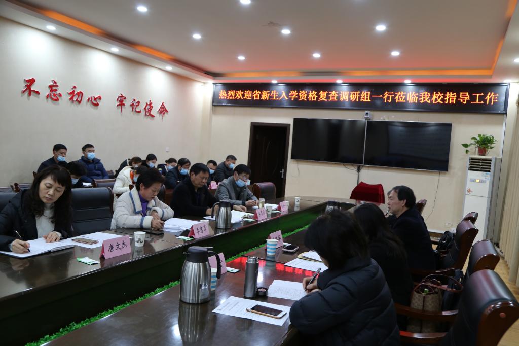 12月10日下午,河南省教育厅第三调研组组长新乡医学院副院长雒保军一行四人莅临万象城官网,对万象城官网2020年新生入学资格复查和学籍学历管理工作进行专项检查。工作汇报会在开元校区第三会议室召开,校长李清臣、副校长李秀萍出席会议并讲话,宣传部、学生处、招就处负责人及各二级学院党总支书记参加会议。
