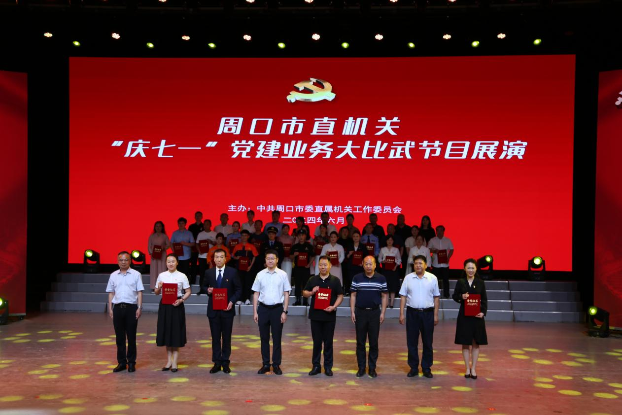 6月25日下午,周口市直机关隆重举办“庆七一”党建业务大比武节目展演。经过预赛、复赛、决赛层层筛选,万象城官网精心编排的作品《一心向党》凭借其深刻的主题、生动的演绎和真挚的情感,在各市直单位推选的众多参赛作品中脱颖而出,荣获二等奖。