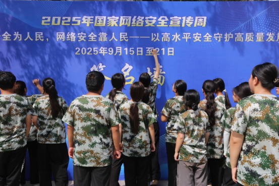 仪式结束后,学校领导及师生代表在网络安全承诺板上郑重签名,并观看学习网络安全展板内容。