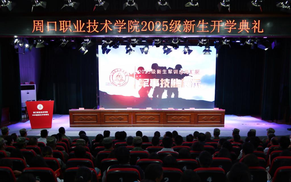 党委副书记李明臣代表学校全体教职员工向2025级新生表示热烈欢迎,向辛勤付出的教官和老师致以崇高敬意。他介绍了周口的深厚文化底蕴,希望这片古老的土地能够给予同学们滋养,丰满青春记忆。随后,他回顾了学校的奋斗历程,并从专业设置、办学条件、所获荣誉等方面进行介绍。