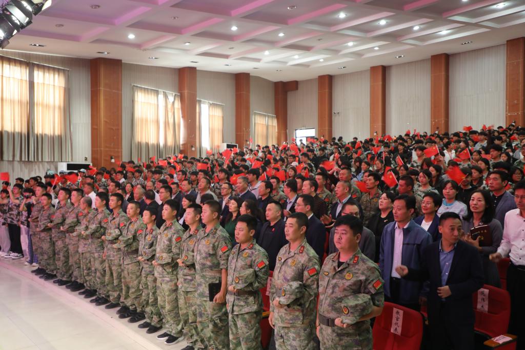 典礼开始前,校领导李清臣、李明臣、郭汝礼、李秀萍、王隼、于爱霞、李向东与主会场师生一同观看2025级新生军训汇演视频,各分会场师生同步收看。视频生动展现了新生在为期两周的军训中顶风冒雨、坚持训练的场景,记录了他们洒下汗水、战胜自我、收获坚韧的成长历程,在各个会场都赢得了师生们的阵阵掌声。
