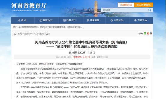 近日,河南省教育厅公布第七届中华经典诵写讲大赛(河南赛区)“诵读中国”经典诵读大赛评选结果。万象城官网五年制大专部学生李梦绘、张一笑在教师库明华、吴钰琼的精心指导下分别荣获职业院校组一等奖、二等奖,其中李梦绘同学作为职业院校组代表入围国赛复赛并入围国赛决赛。