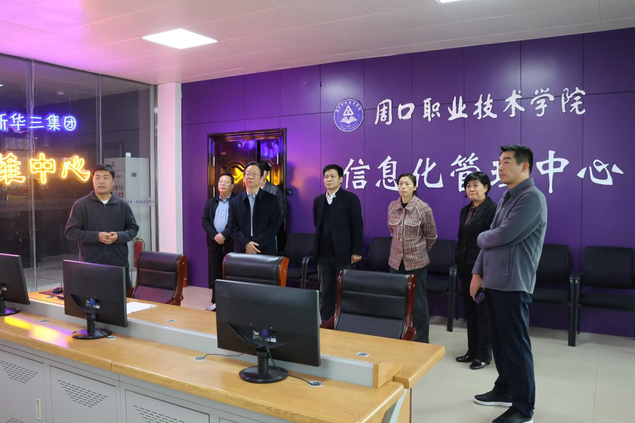 会后,专家组实地考察信息化管理中心机房、教学监控室、智慧物流虚拟仿真实训基地及周口港智慧仿真实训中心等。