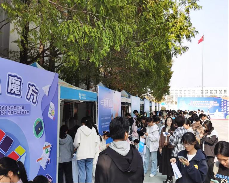 活动通过游园会的形式,设置自我探索、职业体验等互动环节,帮助学生在实践中破除“职业迷茫”,明晰发展方向。副校长王隼、招生就业处许建国亲临现场指导,鼓励学生既要仰望星空,更要脚踏实地。