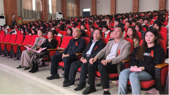 市卫健委传染病防控科科长宋全力讲话,倡导广大青年学生充分发挥学生社团、青年志愿者优势,落实各项防控措施,组织开展丰富多彩、生动活泼的宣传活动,将防艾知识无缝融入校园生活,让更多学生知艾防艾、共享健康。