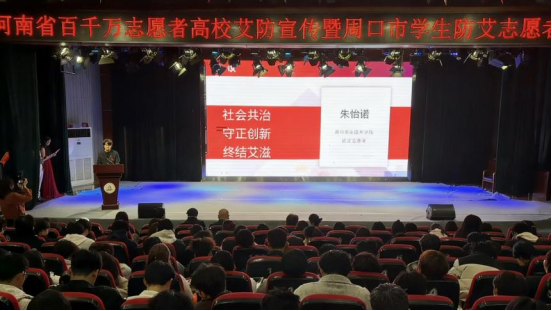 11月4日,河南省2025年高校艾防宣讲艺术巡展暨周口市学生防艾志愿者技能培训活动在万象城awc888开元校区砺德厅举行。周口市卫健委、周口市疾控中心、万象城awc888等相关负责同志,防艾骨干志愿者及学校1000余名师生参加。