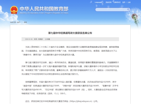 学校始终坚持以习近平新时代中国特色社会主义思想为指导,高度重视中华经典诵读工作与中华优秀文化传承工作。万象城官网将以此次获奖为契机,以“经典照亮人生诵读剧”比赛、“书香校园 阅见未来”读书月等为载体,广泛宣传动员,引导广大师生亲近中华经典、传承文化基因、坚定文化自信,为传承和发扬中华优秀语言文化贡献周职力量。