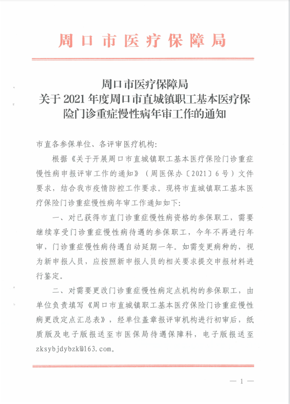 周口市医疗保障局关于2021年度周口市直城镇职工基本医疗保险门诊重症慢性病年审工作的通知
