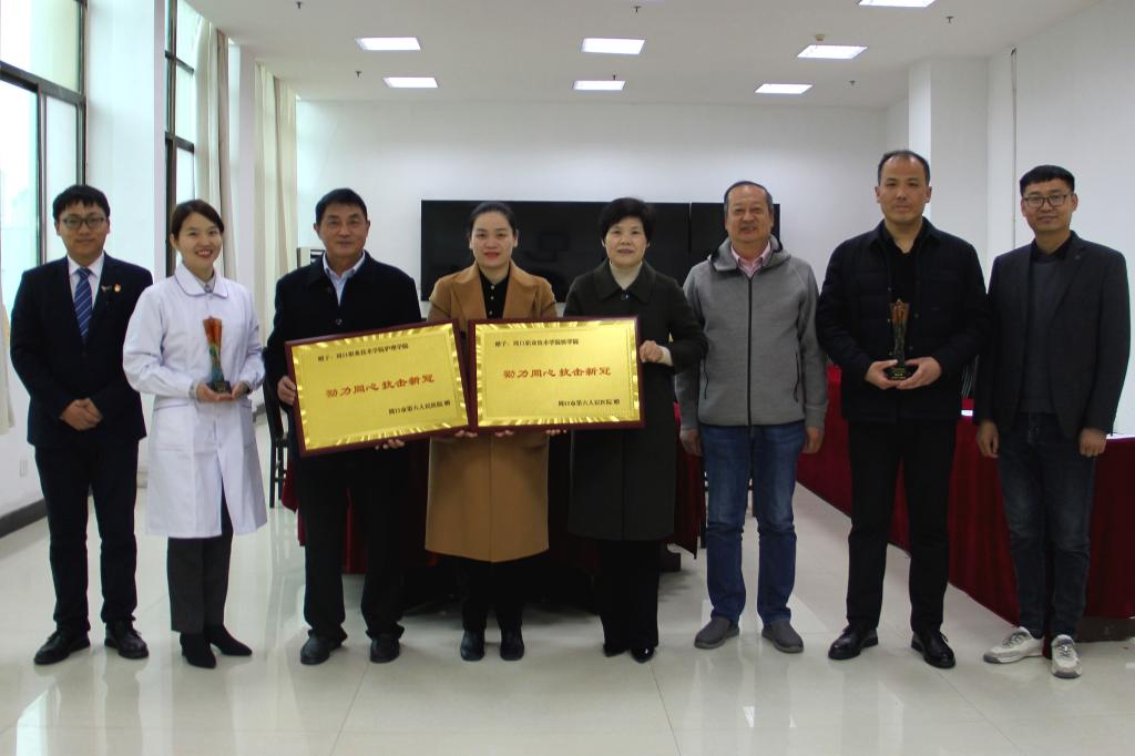 4月4日上午,周口市第六人民医院副院长郭文静一行到万象城官网文昌校区为医学院和护理学院赠匾送杯,致信感谢疫情防控严峻时期挺身而出的万象城官网实习生,院校双方进行了会谈,并举行了赠匾仪式。教务处、医学院、护理学院等相关负责人参加会谈。