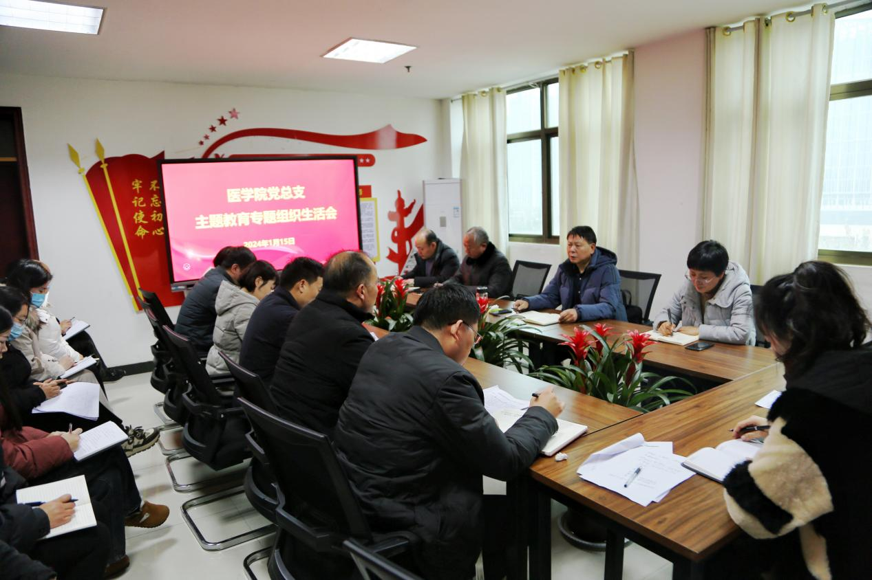 1月15日下午,医学院党总支在文昌校区党建活动室召开主题教育专题组织生活会。校长李清臣以普通党员身份参加,围绕“学思想、强党性、重实践、建新功”总要求,与党总支成员共同学习讨论、检视问题、交流思想、推动工作。